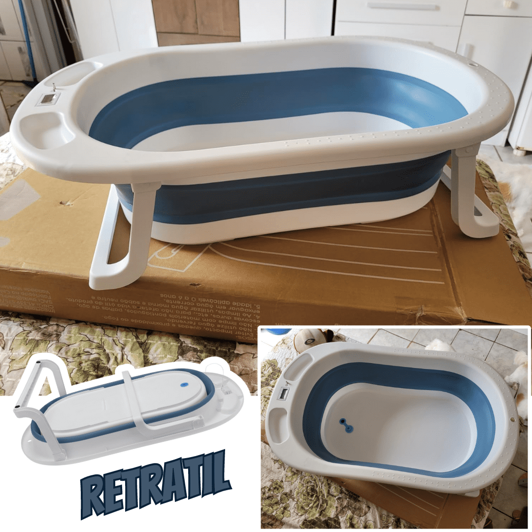 Banheira Retratil Portátil Dobrável Infantil com Termometro Digital Banho Bebê Azul Awiki