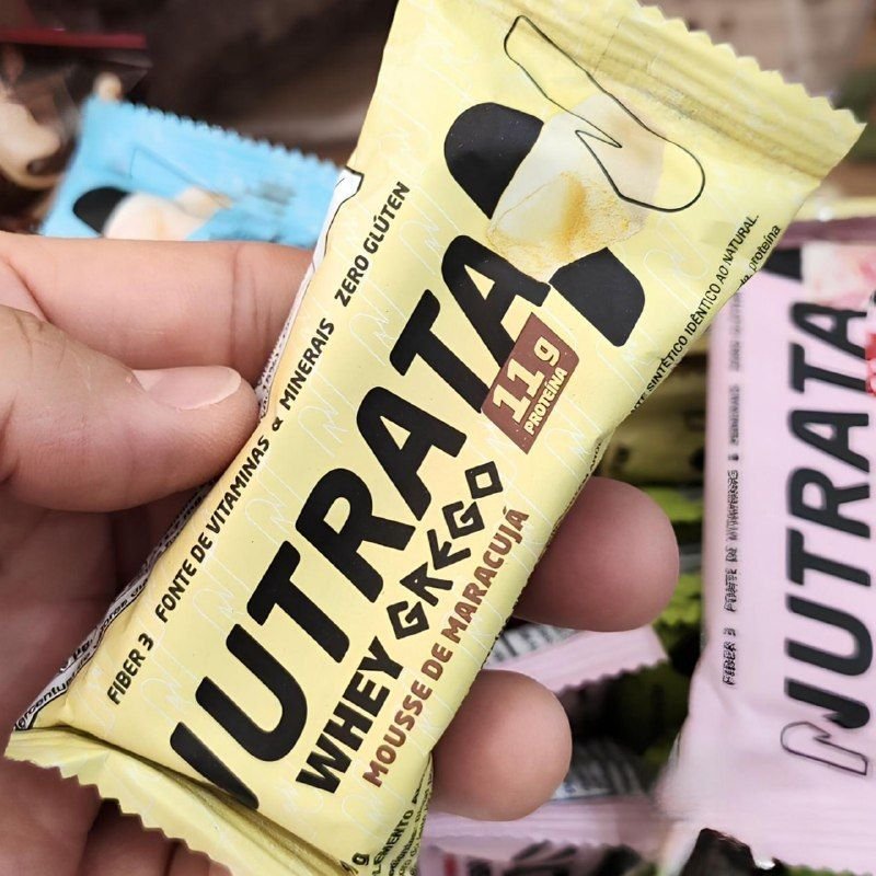 ✅ Barra de Proteína Whey Grego Bar Sabor Mousse de Maracujá 40g Caixa 12 unidades