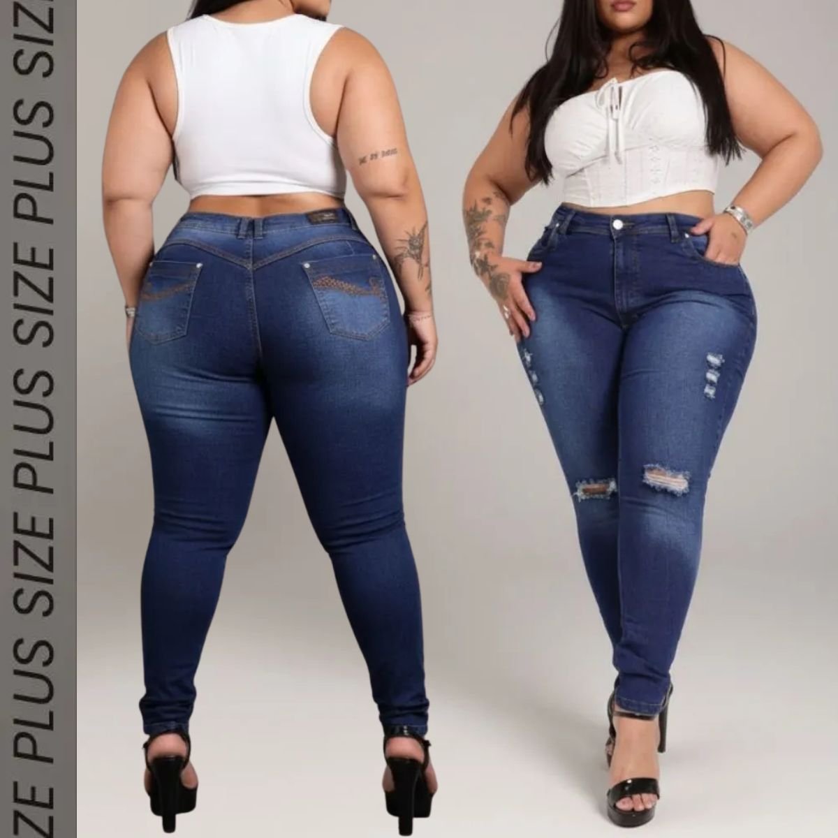 ✅ Calça Jeans Plus Size Feminina Cintura Alta Lycra Promoção
