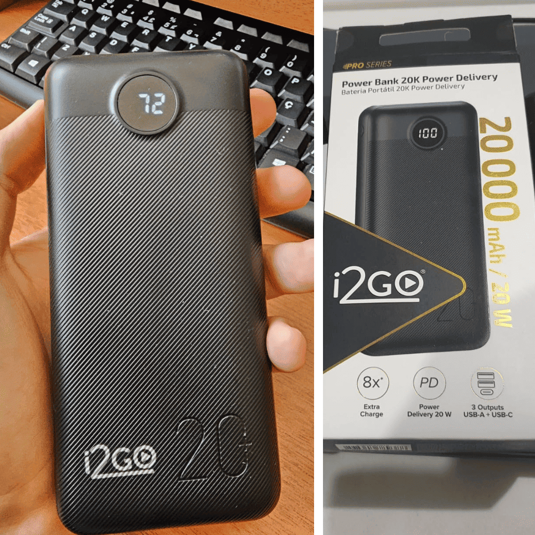 ✅ Carregador Portátil Power Bank i2GO 20.000 mah 12W Smart Charge Preto