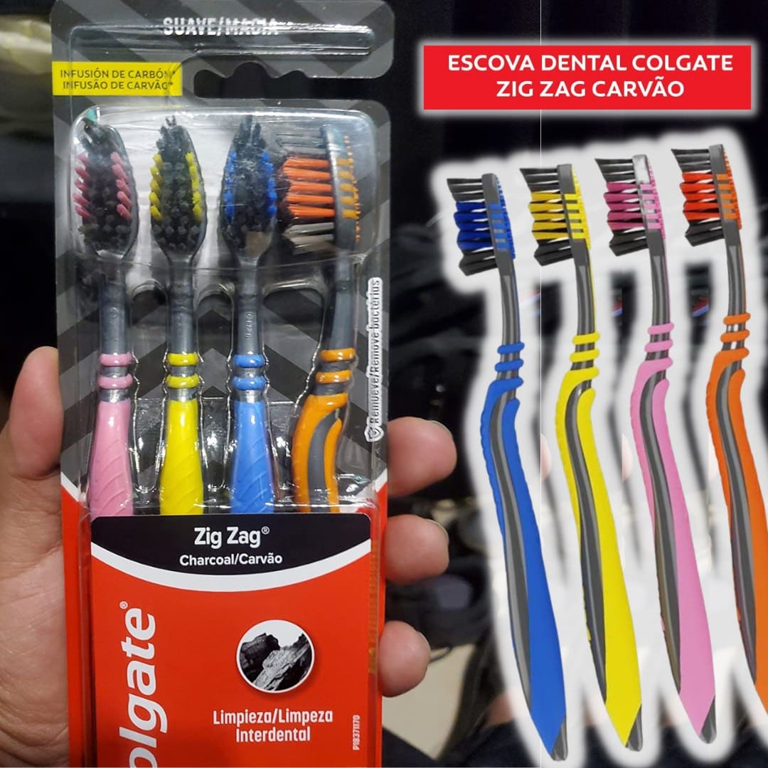 Colgate ZigZag Carvão – Escova Dental, 4 unidades