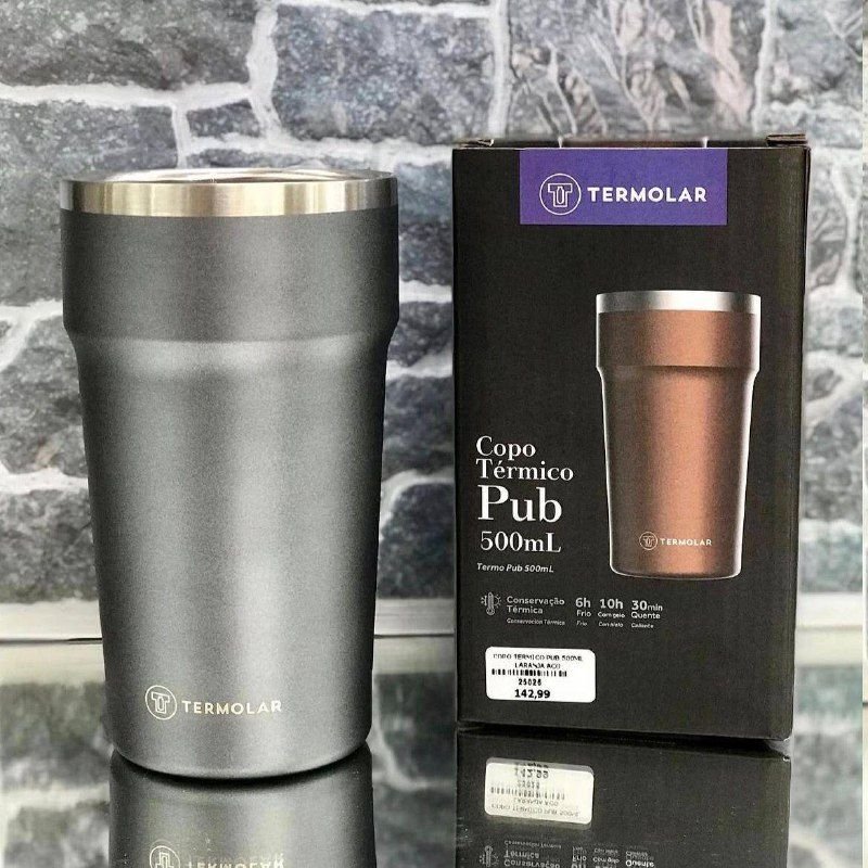 ✅ Copo Térmico Pub 500ml Cinza Para Bebidas Quentes E Frias Cor Chumbo Liso
