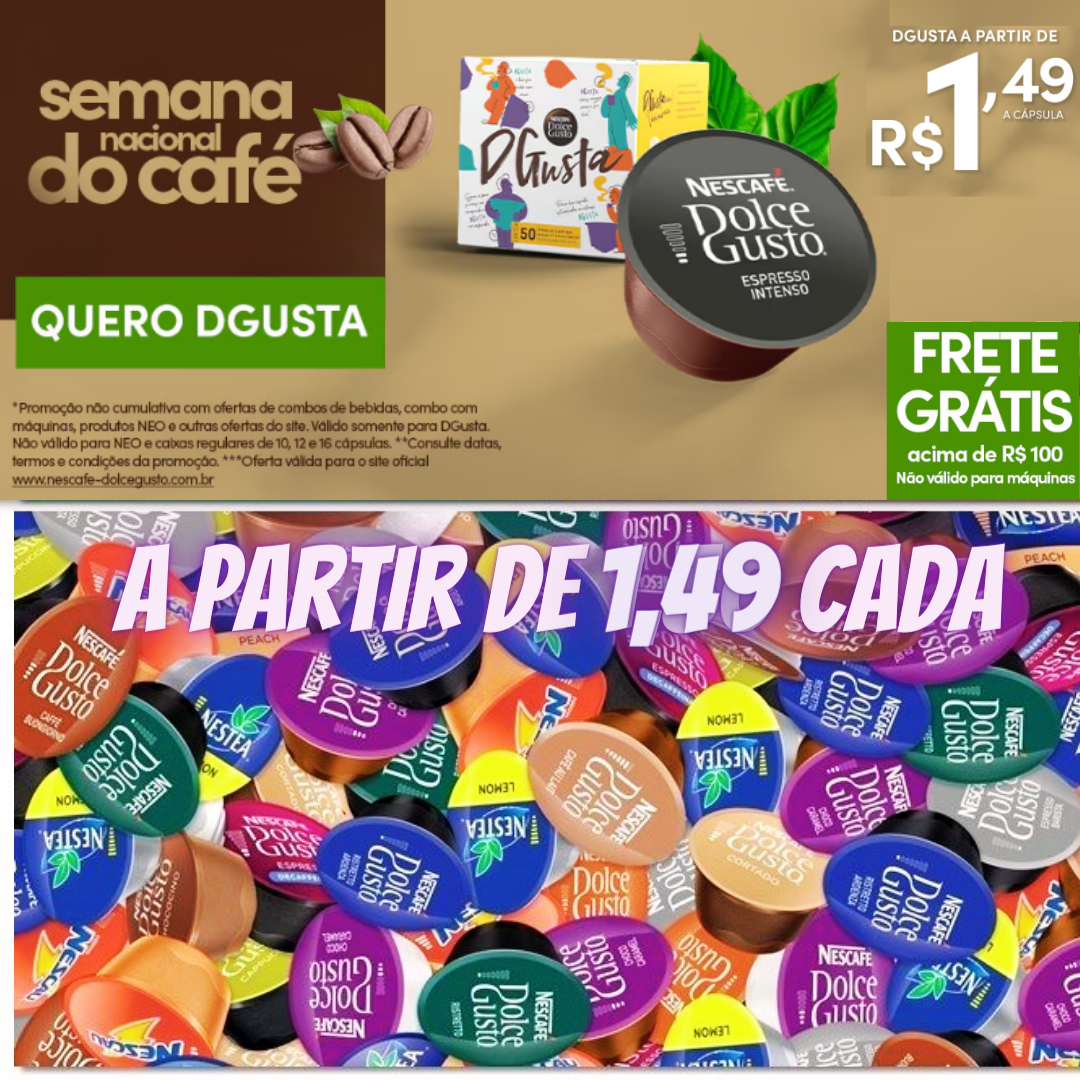 *Promoção válida somente para caixas regulares e DGusta. Não válido para máquinas. Em pedidos a partir de R$ 80,00