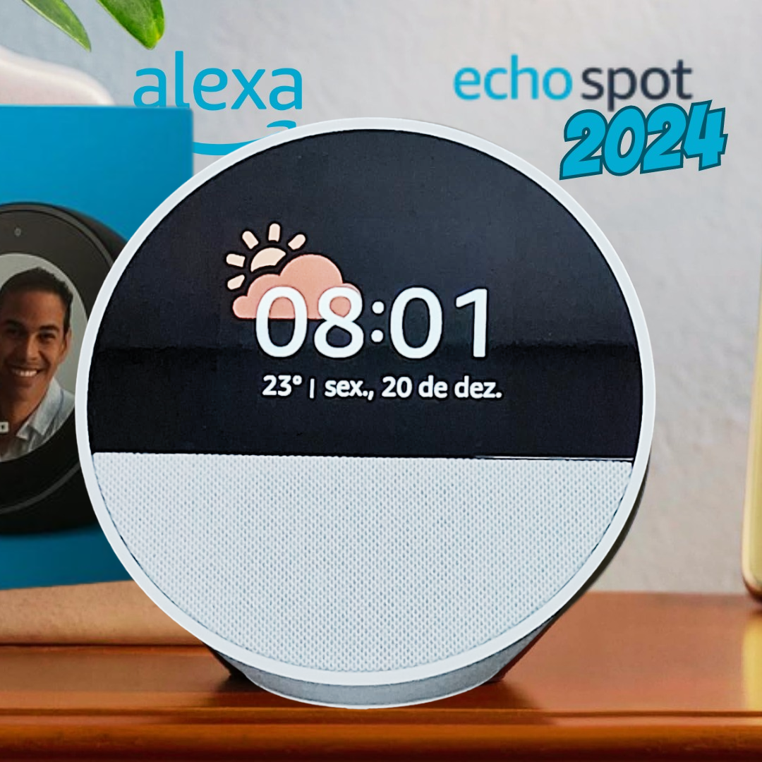 Echo Spot com Alexa (Última geração) | Despertador inteligente com som vibrante | Cor Branca
