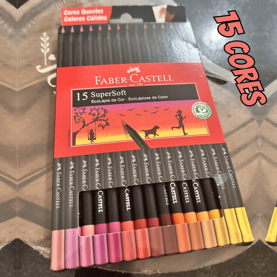 Ecolápis de cor, Faber-Castell, supersoft, 120715SOFTCQ, 15 cores tons quentes, Multicor