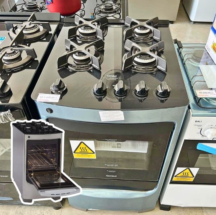 ✅ Fogão Consul 4 Bocas Cor Inox Com Mesa De Vidro E Grade De F