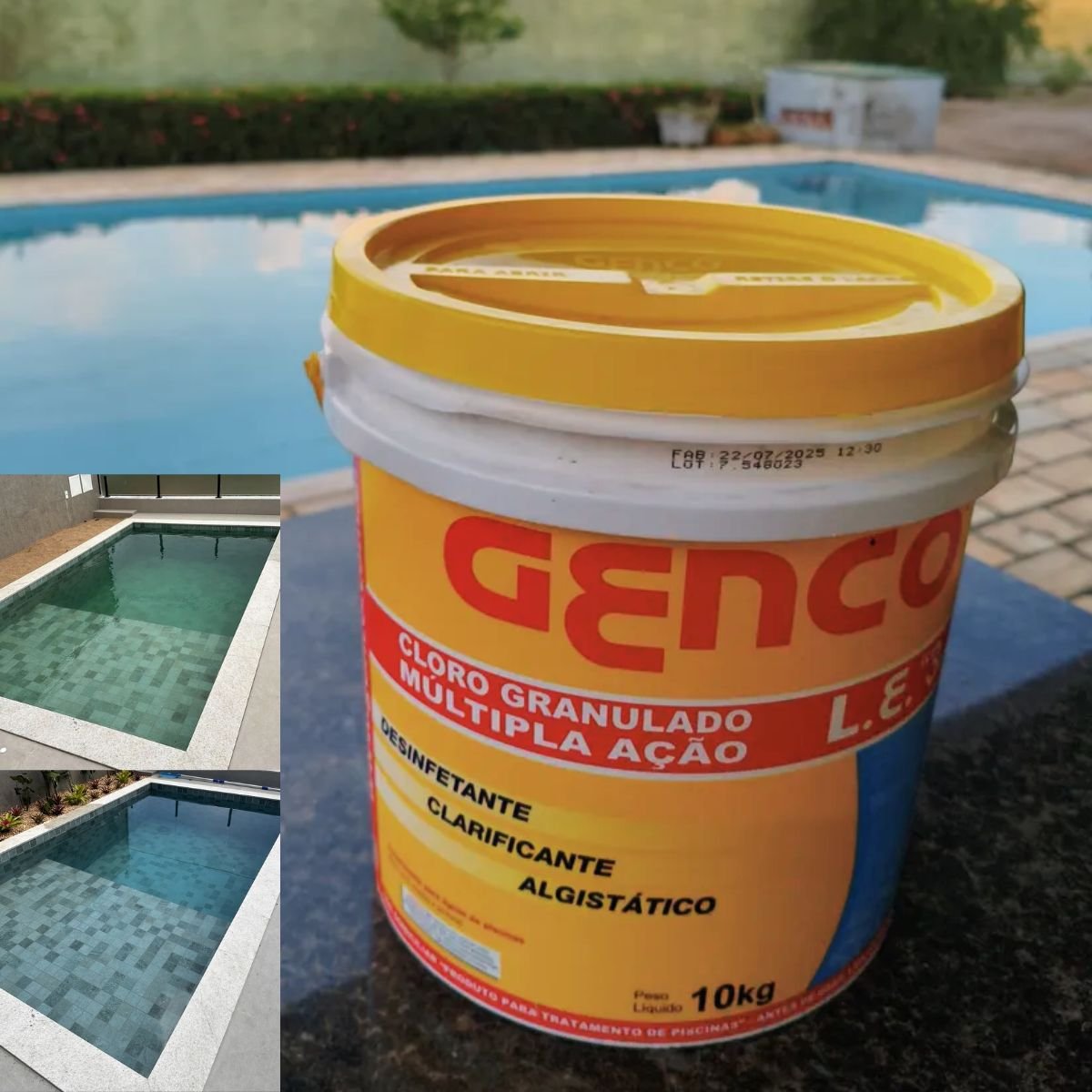 💦 Genco 3 Em 1 Múltipla Ação Balde 10kg Cloro Para Piscina 4 Níveis de dosagem