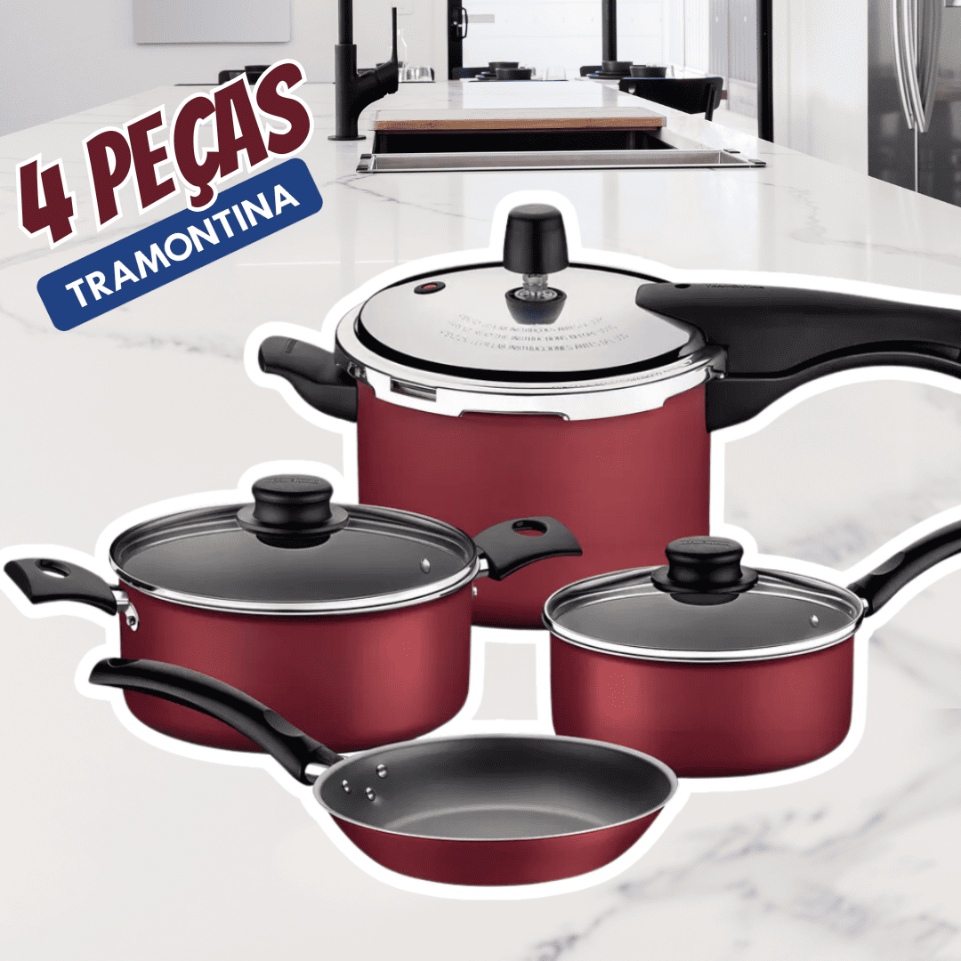✅ Jogo De Panelas Tramontina Turim Vermelho 04 Peças