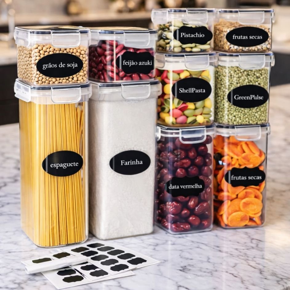 Kit 10 Potes Herméticos Empilháveis de Acrílico com Tampa Silicone