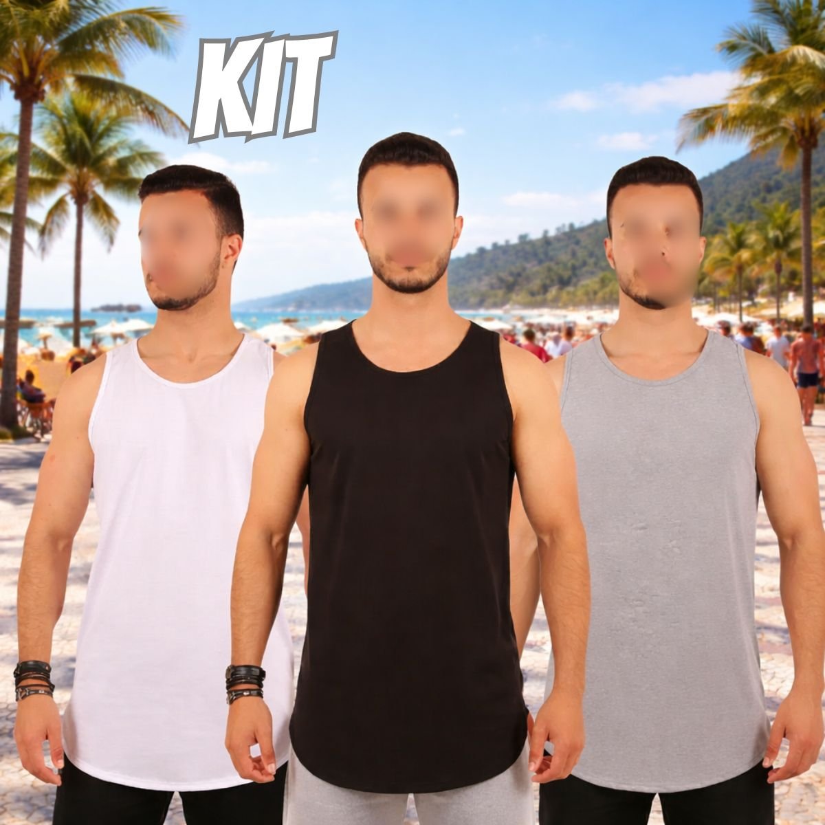 ✅ Kit 3 Camiseta Camisa Regata Masculina Blusa Longline Cavada (2 opções)