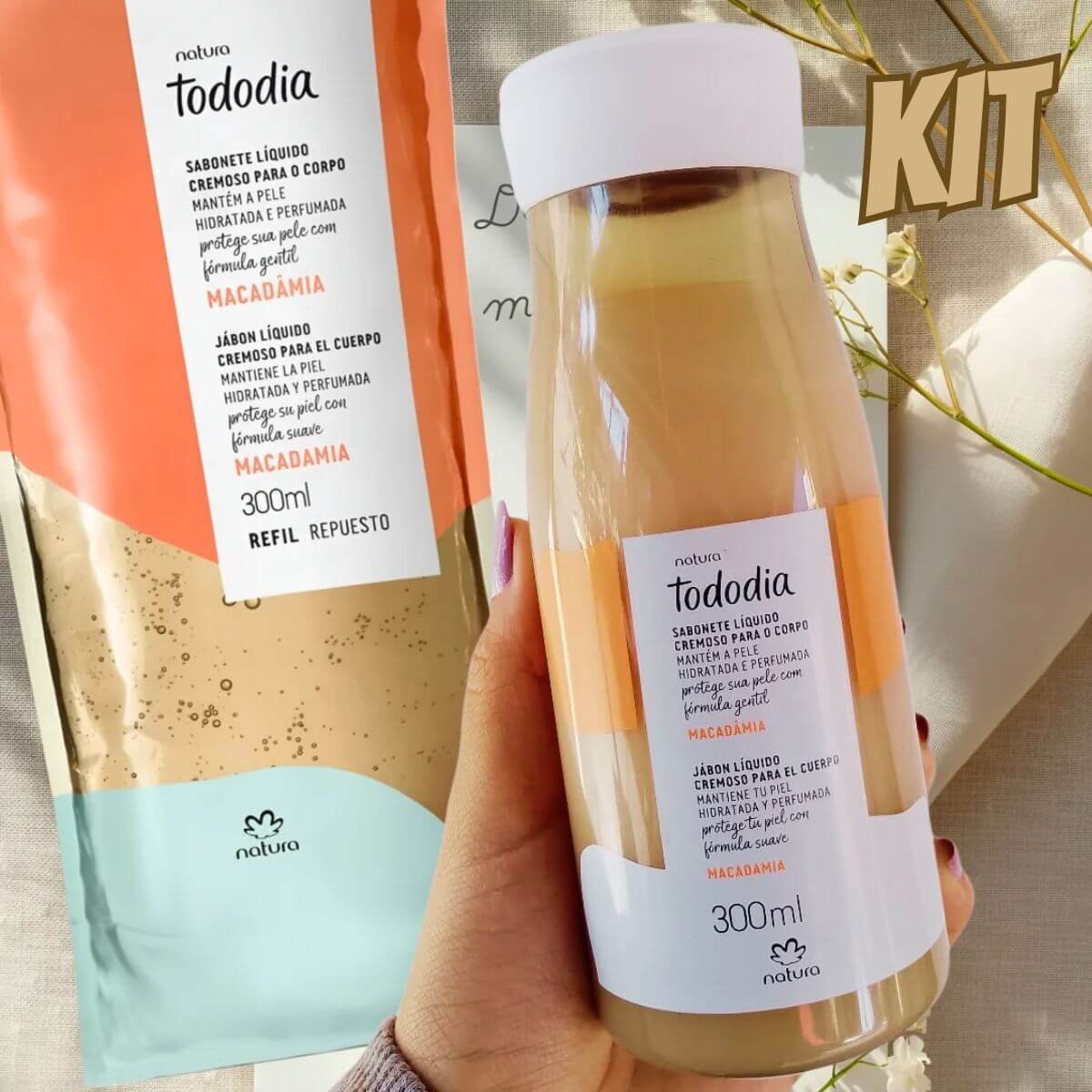 🟠 Kit Sabonete Líquido Cremoso para o Corpo com Refil Tododia Macadâmia (2 produtos)