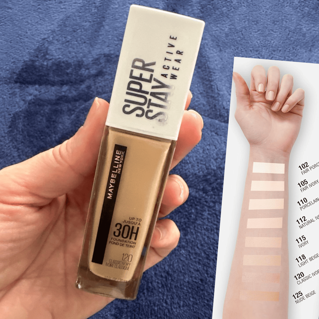 Maybelline NY Base Alta Cobertura Super Stay Active Wear Resistente ao Suor Alta Duração até 30h na Pele, Cor 120 Classic Ivory, 30ml
