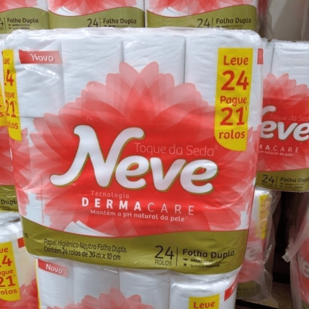Neve Papel Higiênico Toque de Seda Folha Dupla, 30m, Leve 24 Pague 21 Rolos