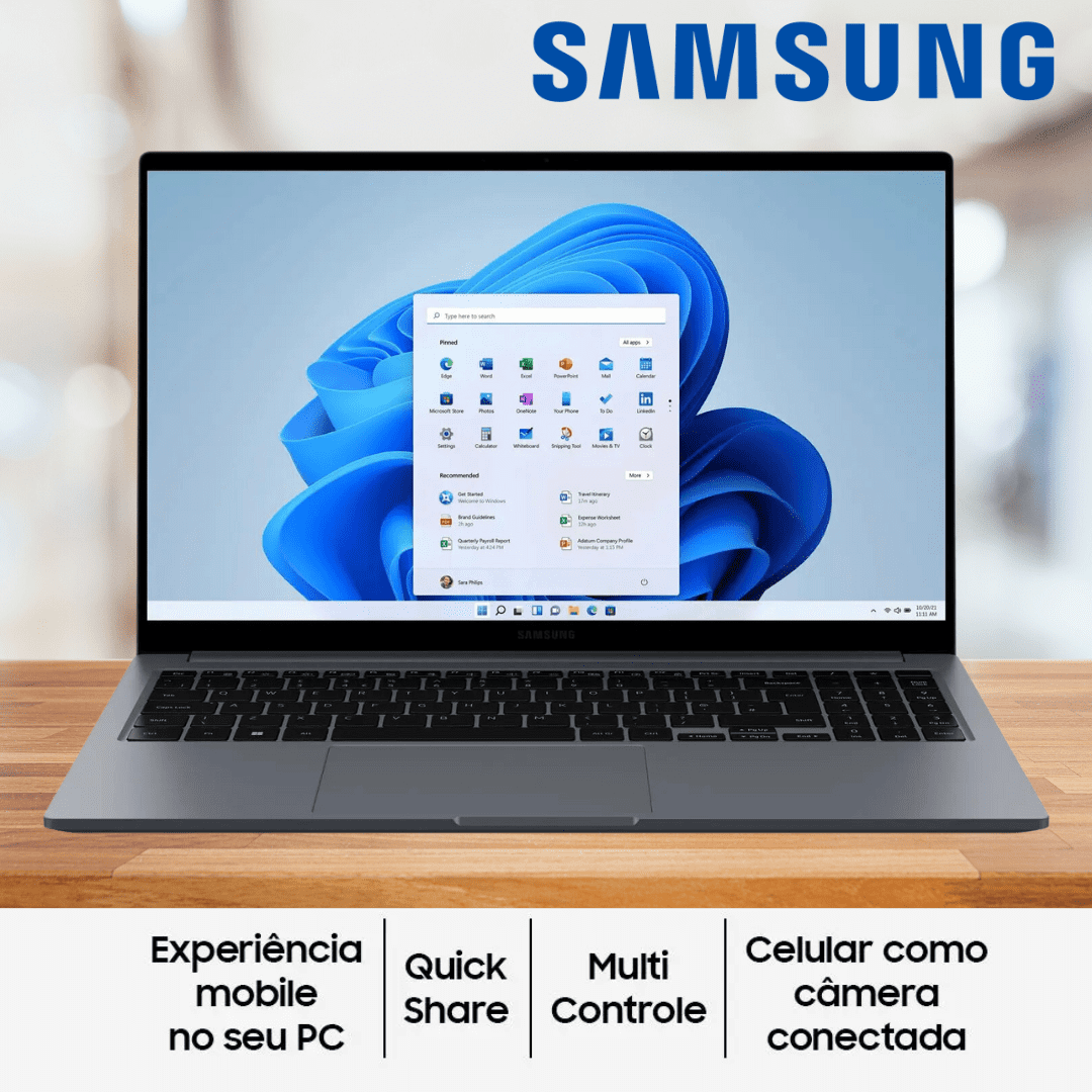 Notebook Samsung Galaxy Book4 Intel Core i5 8GB RAM SSD 256GB 15,6″ Full HD Windows 11 NP750XGJ-KG4BR