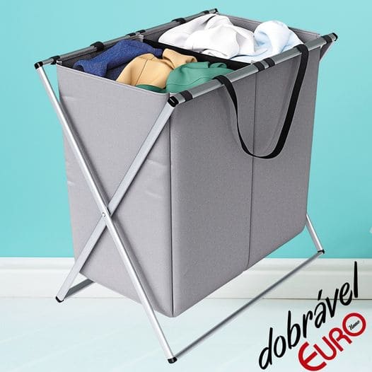 Organizador dobrável de Roupas Sujas com 2 compartimentos, cinza, ORG0693, Euro Home