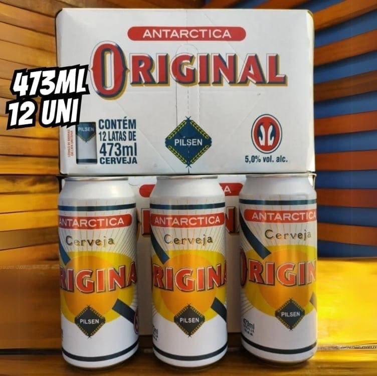 Pack Cerveja Original Antarctica, Lata, 473ml, Caixa 12 unidades