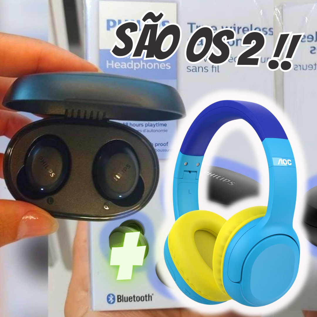 PHILIPS Fone de ouvido sem fio TWS + AOC – Headphone Bluetooth