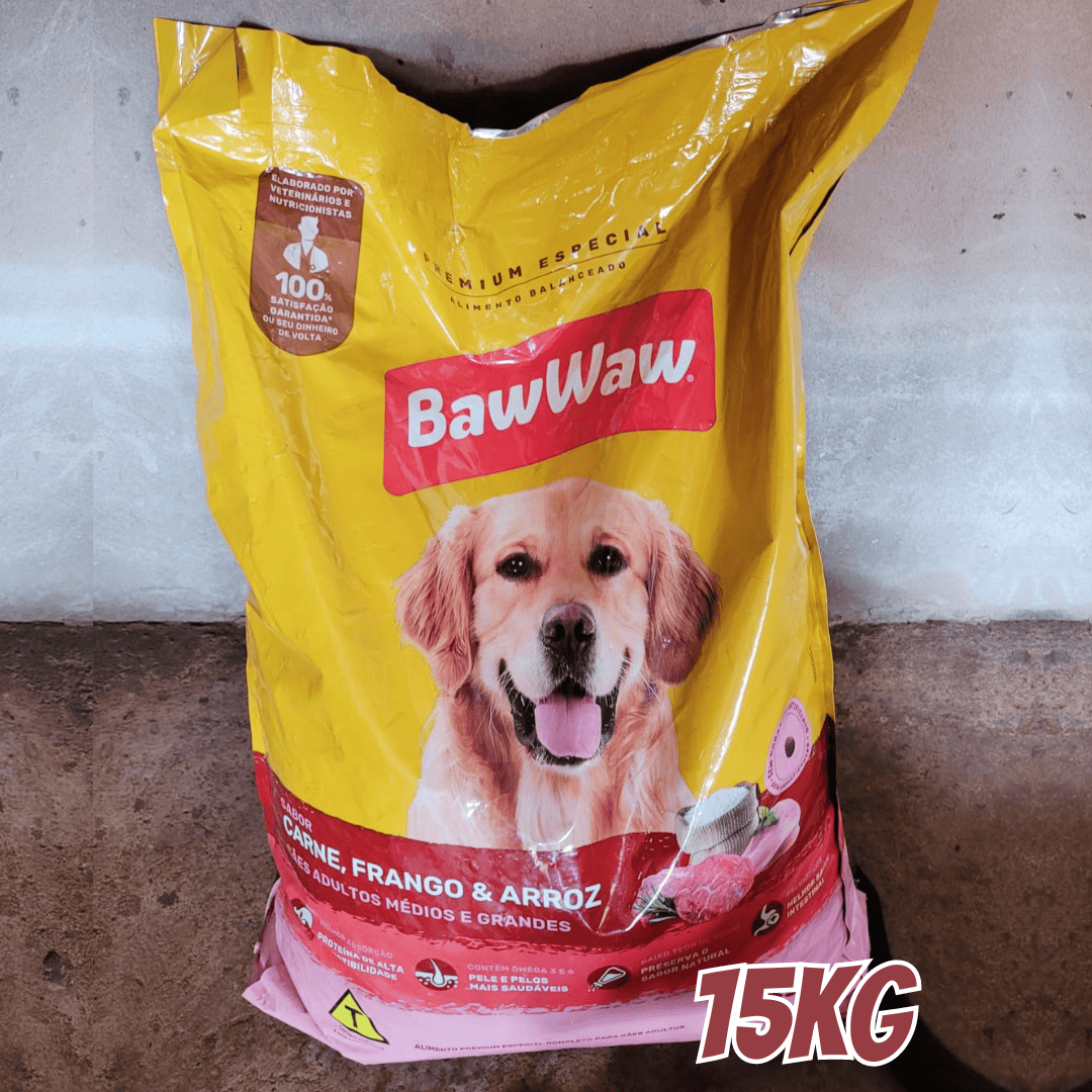Ração Baw Waw para cães adultos médios e grandes sabor Carne, Frango e Arroz – 15kg