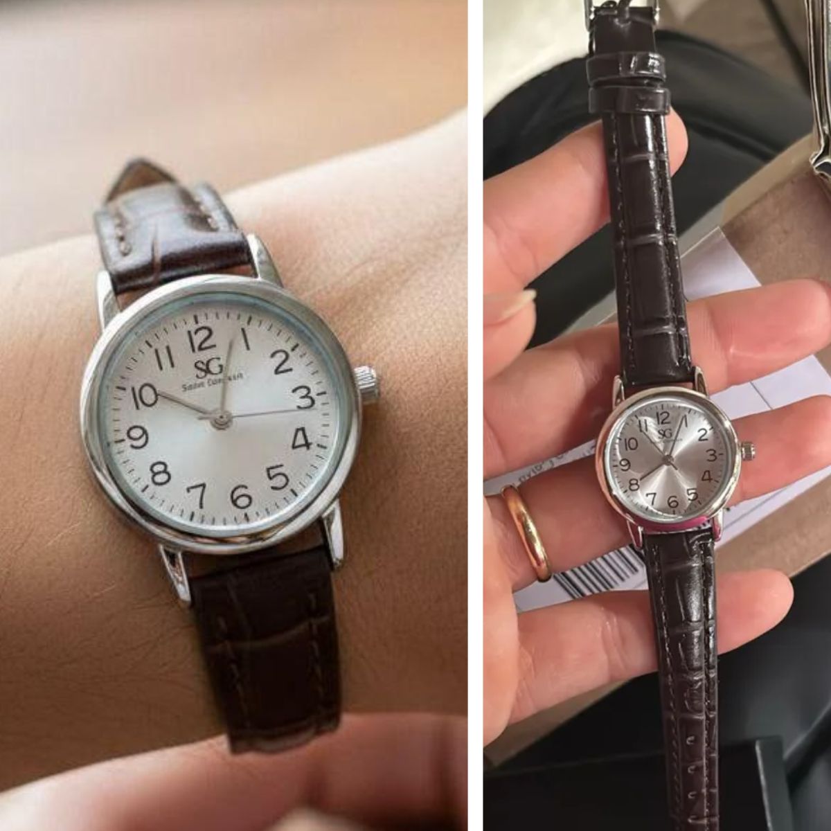 Relógio Feminino Chrowl Marrom Saint Germain Pulseira Couro Caixa Prateada Fundo Branco 38mm